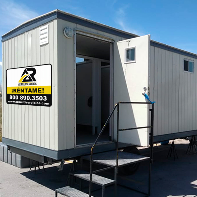 El sanitario camper es un remolque climatizado con aislamiento térmico y acústico de fibra de vidrio en paredes, techos y muros para brindar privacidad y confort.